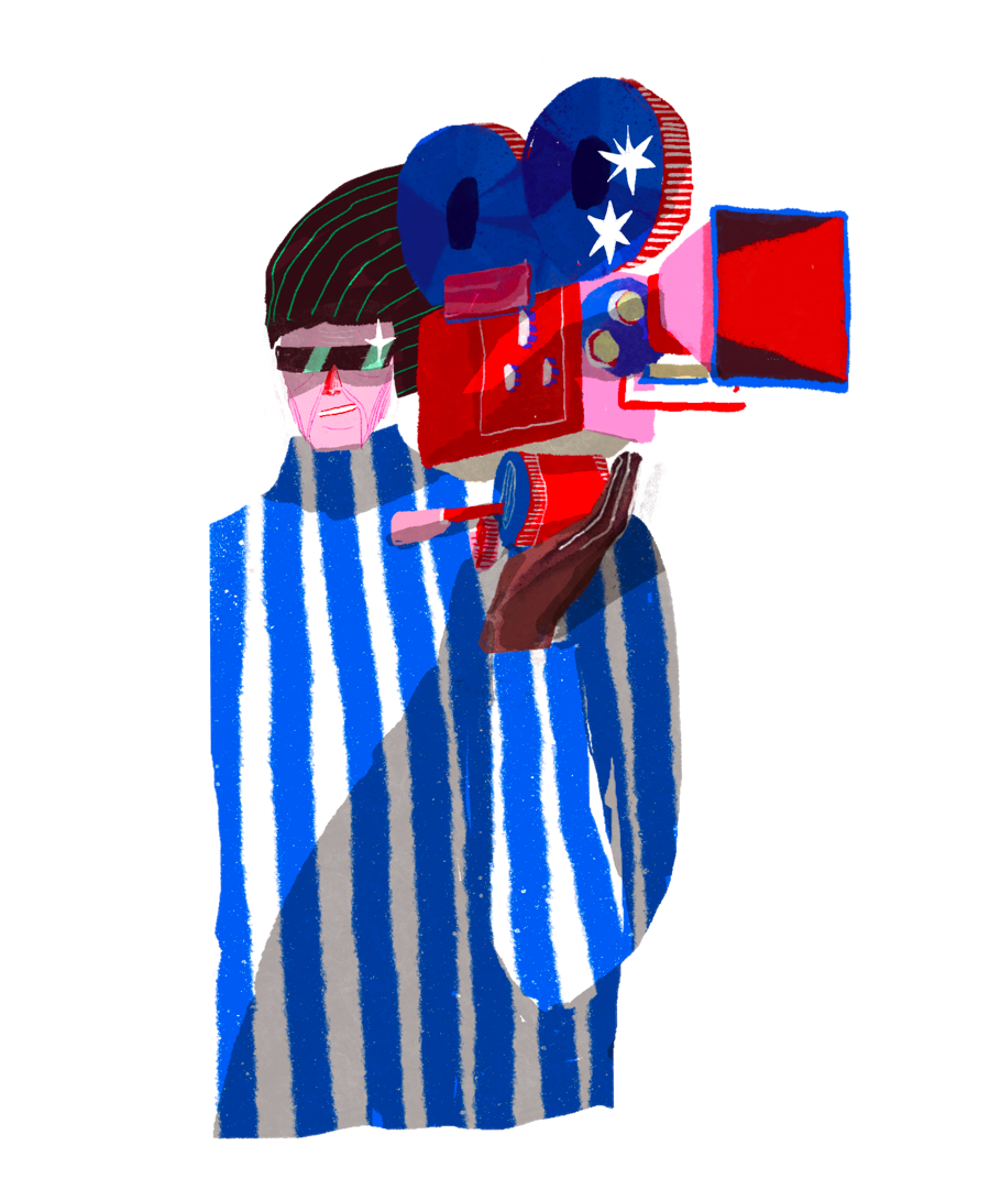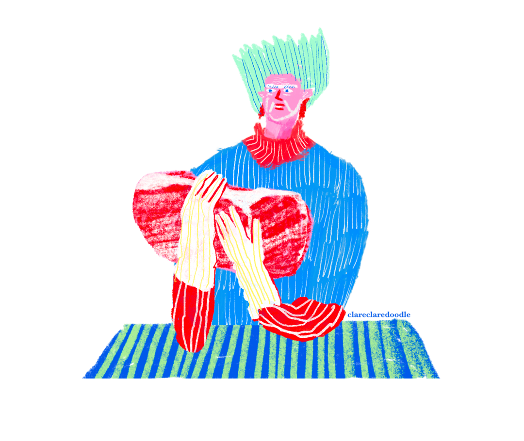 A person with a large piece of meat / A cinematographer shooting a film